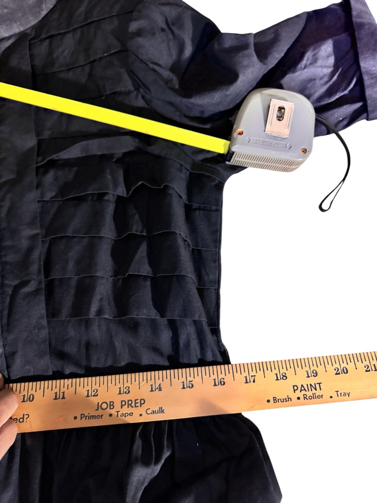 Vintage 1980s Bill Geoffreys Midi Dress Sz 8 Black puff sleeve,side pockets